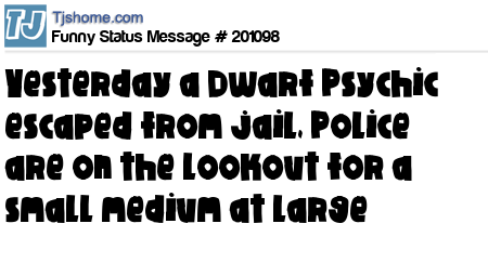 - # 163940 A midget fortuneteller broke out of the county jail. Police report there is a small medium at large.