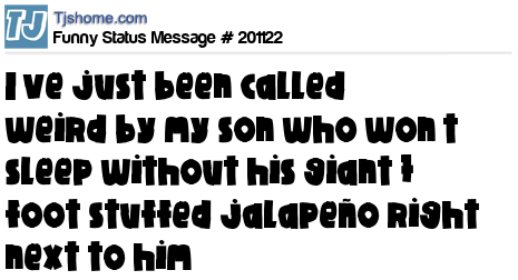 X says I’ve just been called weird by my son who won’t sleep without his giant 7 foot stuffed jalapeño right next to him