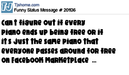 X is Can’t figure out if every piano ends up being free or if it’s just the same piano that everyone passes around for free on Facebook Marketplace... 😐