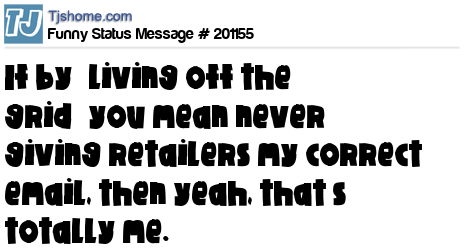 X says If by “living off the grid” you mean never giving retailers my correct email, then yeah, that’s totally me.