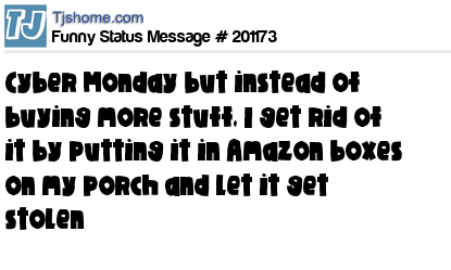 X says Cyber Monday but instead of buying more stuff, I get rid of it by putting it in Amazon boxes on my porch and let it get stolen