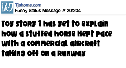 X says Toy story 2 has yet to explain how a stuffed horse kept pace with a commercial aircraft taking off on a runway
