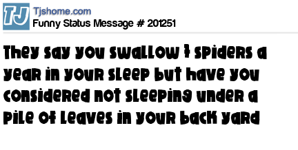 X says they say you swallow 7 spiders a year in your sleep but have you considered not sleeping under a pile of leaves in your back yard