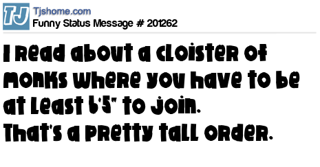X says I read about a cloister of monks where you have to be at least 6'5" to join. That's a pretty tall order.
