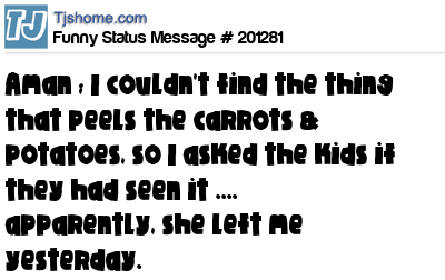 - # 62937 I couldnt find the thingy that peels the carrots & potatoes, so I asked the kids if they had saw it & apparently, she left me yesterday?!