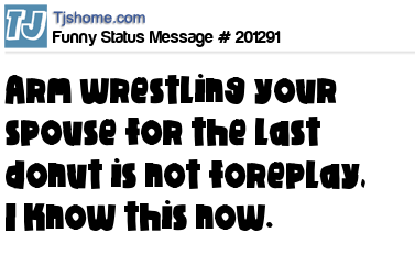 X says Arm wrestling your spouse for the last donut is not foreplay, I know this now.