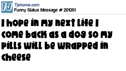 X says I hope in my next life I come back as a dog so my pills will be wrapped in cheese