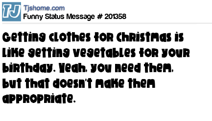 X says Getting clothes for Christmas is like getting vegetables for your birthday. Yeah, you need them, but that doesn't make them appropriate.