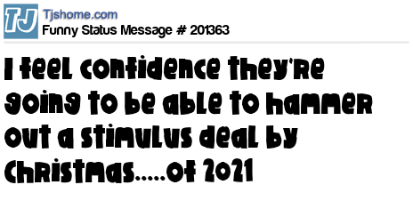 X is I feel confidence they're going to be able to hammer out a stimulus deal by Christmas.....of 2021