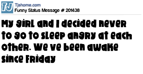 X says My girl and I decided never to go to sleep angry at each other. We’ve been awake since Friday