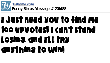 X is I just need you to find me 100 upvotes! I can't stand losing, and I'll try anything to win!