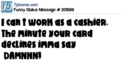 X is I can’t work as a cashier. The minute your card declines imma say “DAMNNN!”