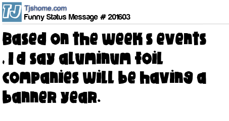 X says Based on the week’s events , I’d say aluminum foil companies will be having a banner year.