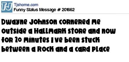 X says Dwayne Johnson cornered me outside a Hallmark store and now for 20 minutes I’ve been stuck between a Rock and a card place