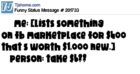 X says me: [lists something on fb marketplace for $400 that’s worth $1,000 new.] person: take $6??