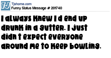 - # 185609 I always knew that one day I'd end up face-down in the gutter. I just didn't expect everyone to keep on bowling. . .