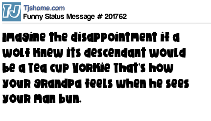 - # 189692 Imagine the disappointment if a wolf knew its descendant would be a pug. That's how your grandpa feels when he sees your man bun.