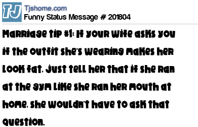 - # 207859 Marriage tip: If your wife asks you if the outfit she's wearing makes her look fat, just tell her that if she ran at the gym like she ran her mouth at home, she wouldn't have to ask that question.
