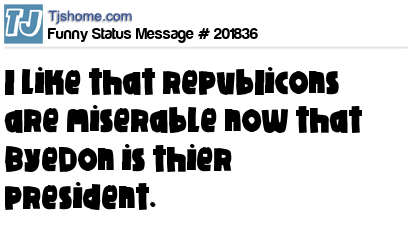X I like that repubIicons are miserable now that ByeDon is thier president.