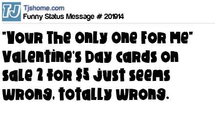 - # 204548 2 for the price of 1 "Your the only one for me" Valentine day cards just seems wrong, all wrong.