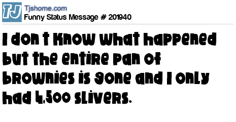 X says I don’t know what happened but the entire pan of brownies is gone and I only had 4,500 slivers.
