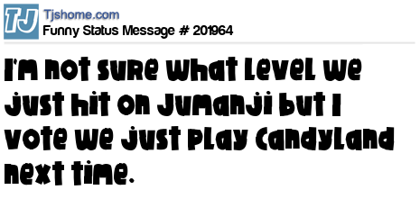 X says I'm not sure what level we just hit on Jumanji but I vote we just play Candyland next time.