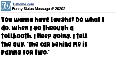 - # 16475 You wanna have fun? Do what I do. When I go through a tollbooth, I keep going. I tell the guy, "The car behind me is paying for two
