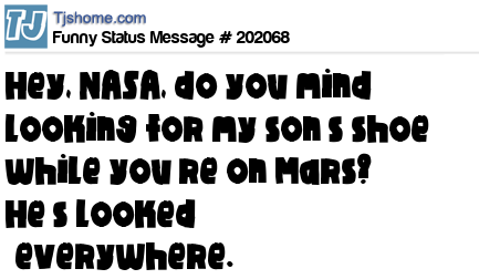 X says Hey, NASA, do you mind looking for my son’s shoe while you’re on Mars? He’s looked “everywhere.”