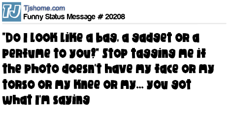 X says "Do I look like a bag, a gadget or a perfume to you?" Stop tagging me if the photo doesn't have my face or my torso or my knee or my... you got what I'm saying