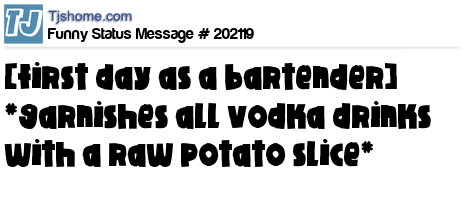 X says [first day as a bartender] *garnishes all vodka drinks with a raw potato slice*