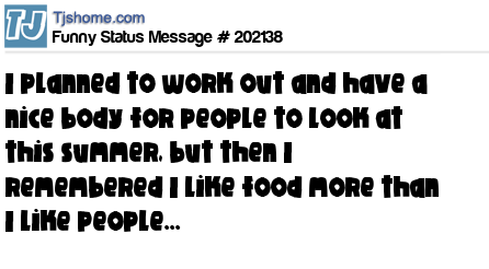 X says I planned to work out and have a nice body for people to look at this summer, but then I remembered I like food more than I like people...