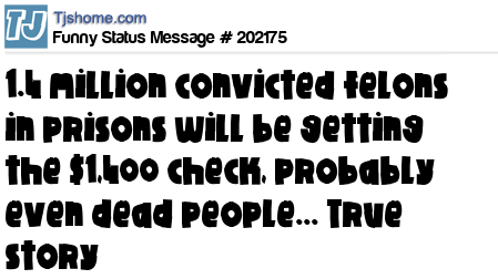 X says 1.4 million convicted felons in prisons will be getting the $1,400 check, probably even dead people... True story