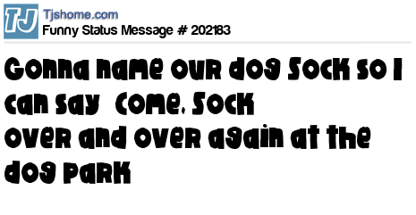 X says Gonna name our dog Sock so I can say “Come, Sock” over and over again at the dog park