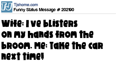 X says Wife: I’ve blisters on my hands from the broom. Me: Take the car next time!