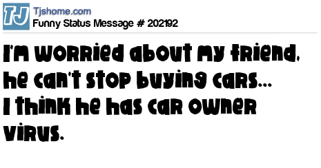 X says I'm worried about my friend, he can't stop buying cars... I think he has car owner virus.