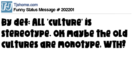 X is By def: ALL 'culture' is stereotype. Ok maybe the old cultures are monotype, WTH?