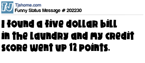 X says I found a five dollar bill in the laundry and my credit score went up 12 points.