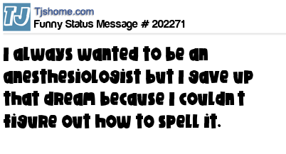 X says I always wanted to be an anesthesiologist but I gave up that dream because I couldn’t figure out how to spell it.