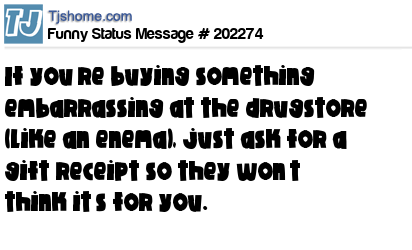- # 204830 Top Tip: If you’re buying something embarrassing at the drugstore (like an enema), just ask for a gift receipt so they won’t think it’s for you.