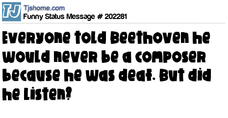 - # 173147 Never let anyone tell you what you can and can't do. Take Beethoven for example, they told him he could not be a musician because he was deaf... but he didn't listen.