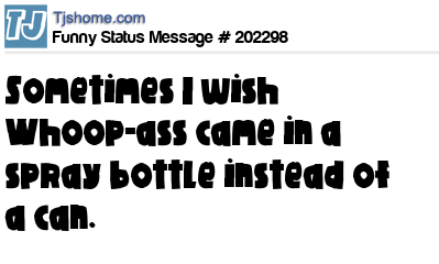 X says Sometimes I wish Whoop-ass came in a spray bottle instead of a can.