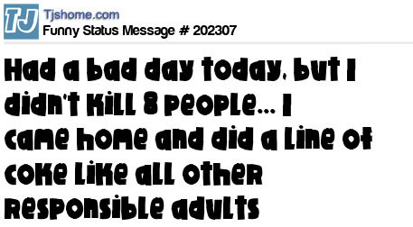 X Had a bad day today, but I didn't kill 8 people... I came home and did a line of coke like all other responsible adults