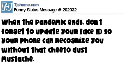 X says When the pandemic ends, don’t forget to update your Face ID so your phone can recognize you without that cheeto dust mustache.