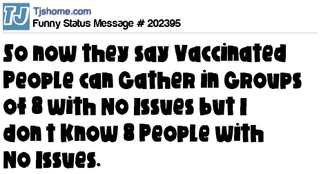 X says So now they say Vaccinated People can Gather in Groups of 8 with No Issues but I don’t Know 8 People with No Issues.