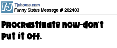 - # 65659 I do procrastinate more than I should, but it always gives me something to do tomorrow...