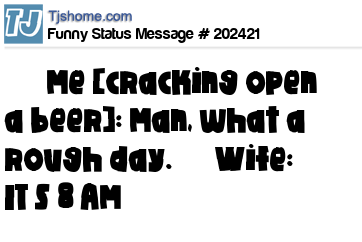 X says Me [cracking open a beer]: Man, what a rough day. Wife: IT’S 8 AM