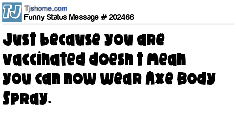 X says Just because you are vaccinated doesn’t mean you can now wear Axe Body Spray.