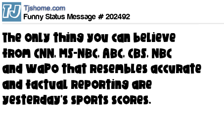 X is The only thing you can believe from CNN, MS-NBC, ABC, CBS, NBC and WaPo that resembles accurate and factual reporting are yesterday's sports scores.