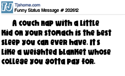 X says A couch nap with a little kid on your stomach is the best sleep you can ever have. It’s like a weighted blanket whose college you gotta pay for.