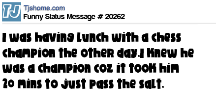 X is i was having lunch with a chess champion the other day.I knew he was a champion coz it took him 20 mins to just pass the salt.